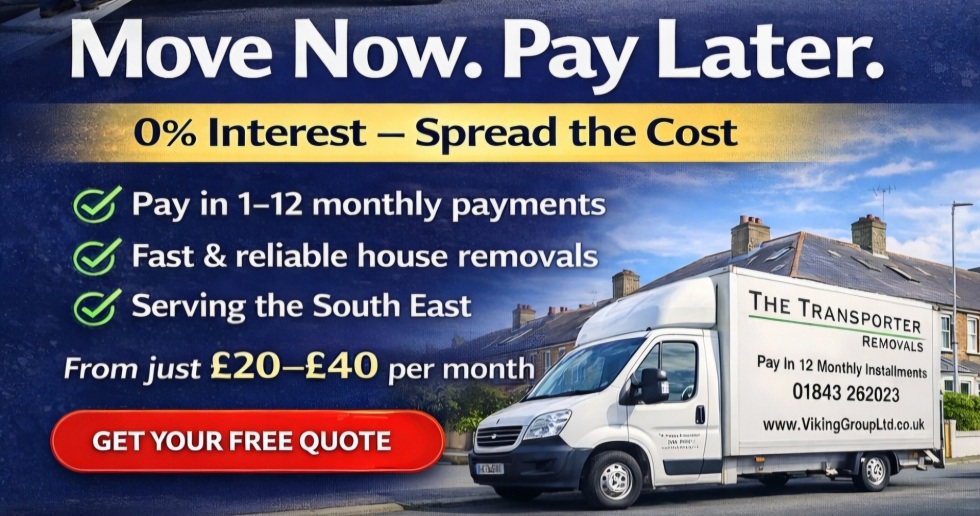 Removals that accept payment plans in Kent. Move Now, Pay Later, Pay a 25% deposit and the balance in 11 monthly installments.